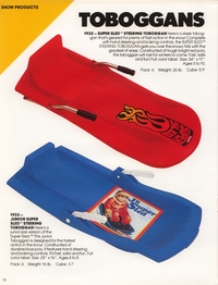 | DESCRIPTION | Coleco Toys and Games '80 - We're the One: Catalog of electronic, plastic, and variant toys from Coleco for the 1980 store season. This catalog was intended for chains and purchasers for stores to browse through and buy Coleco products by the truckload. Therefore, the prices are on a separate green sheet of paper, and the catalog itself focuses on top-quality shots of all the toys. Toys include electronic football, hockey, socker and basketball games, Quiz Wiz, Lil Genius, Zodiac, Colortron, Marksman, Cycle Speedway, Power Jet Hockey, and a wide range of toboggans and plastic pieces rebranded as "slide-a-boggans". Also has a range of strollers and baking ovens. Great colors, great descriptions, many dreams inside. (1980) |