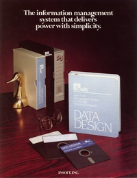 | DESCRIPTION | Brochure for Data Design by InSoft, "The Information Management System that Delivers Power with Simplicity." Cover indicates it as a companion to Lotus 1-2-3 and Micropro Wordstar (1983) |
