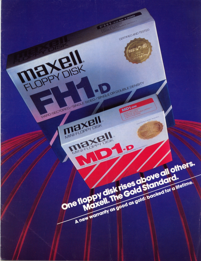 | DESCRIPTION | The Maxell Corporation's 1983 selection of Floppy Disks (5 1/4", 8", and Compact) as well as other recording media, presented in dazzling color. (1983) |