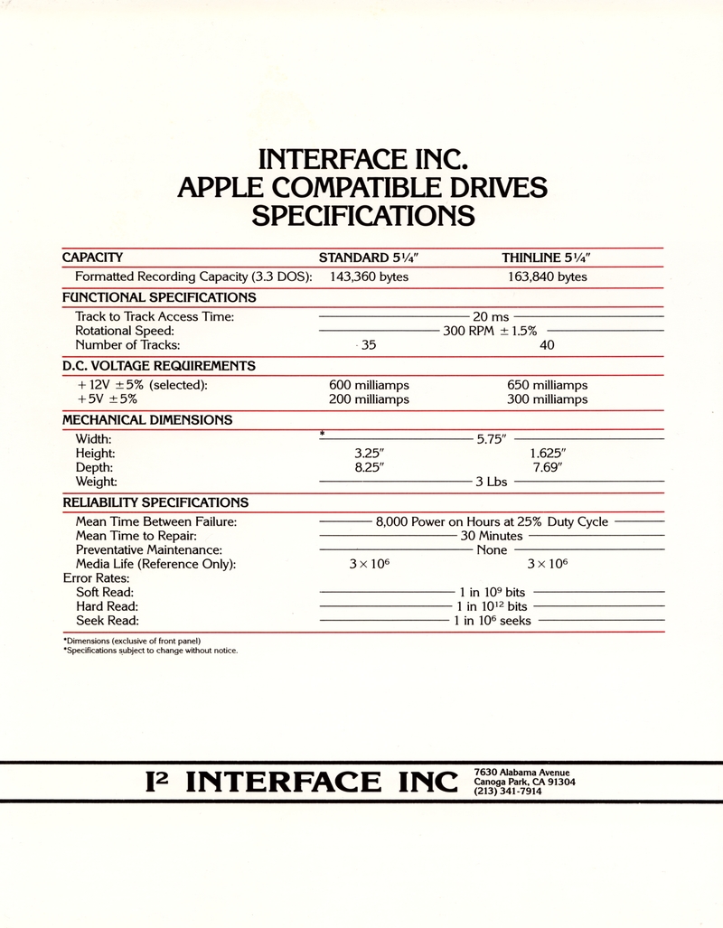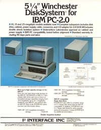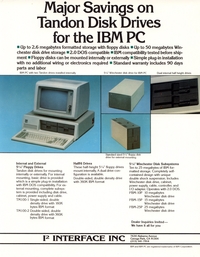 | DESCRIPTION | The 1984 Interface Inc. Catalog, including a number of Winchester and external hard drives for the IBM-PC. Intended for a 5 1/4" form factor and all reasonably priced in the thousands (1984) |