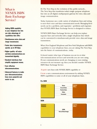 | DESCRIPTION | New England Telephone and New York Telephone, soon to be NYNEX, introduce you to ISDN, to change the way your business manages voice and data communications: NYNEX ISDN Basic Exchange Service. 16-Page pamphlet outlining the magic of ISDN, the way it can join your network, and its advantages. (1990) |